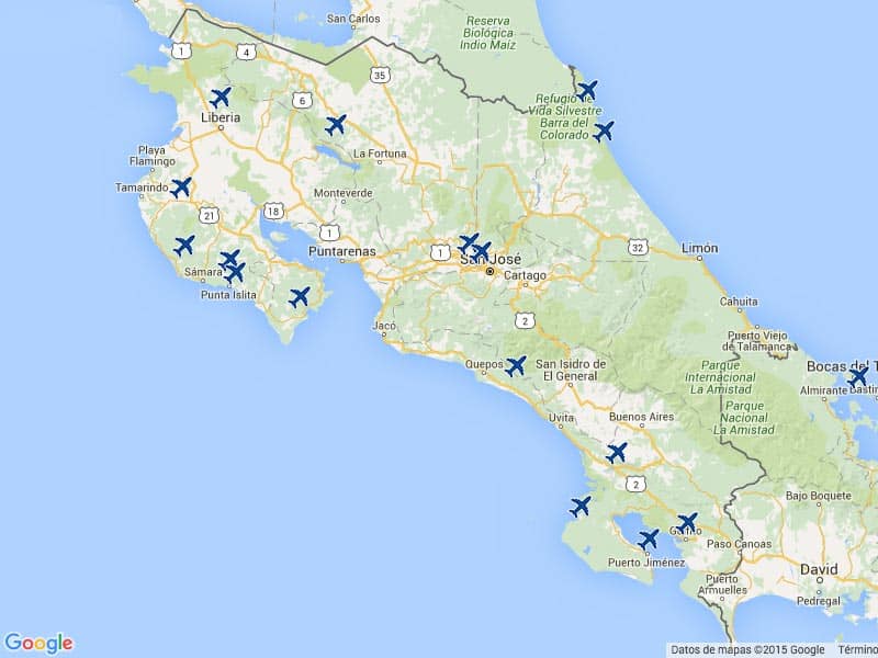 The service of the airlines covers the whole Costa Rican territory, from the Pacific to the Atlantic coasts, and also from North to South.